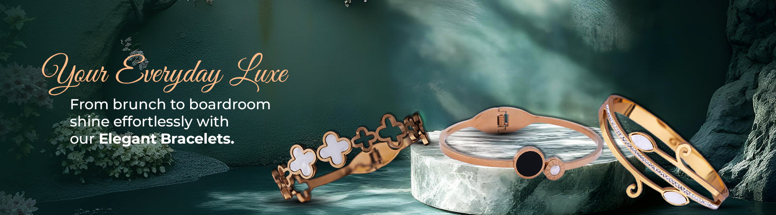 No reviewsAdd a touch of sophistication to your jewelry collection with this clover-inspired gold-toned bracelet. Featuring a series of beautifully crafted four-leaf clover motifs with glossy white inlay, this piece symbolizes luck, elegance, and timeless charm. The secure hinged clasp ensures comfort and ease of...- ₹. 504.00