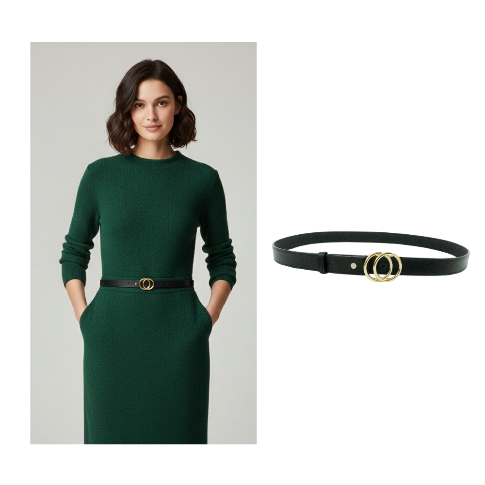 You can pair up this black belt with an oversized shirt, ankle-high boots, and an animal print side bag to get a splendid look.
