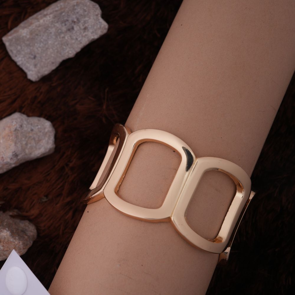 Add a bold and chic touch to your outfit with the JDBracelets Golden Statement Bracelet. Designed with a modern geometric cut-out pattern, this bracelet exudes sophistication and style. Its glossy golden finish makes it the perfect accessory to complement both casual and party outfits.