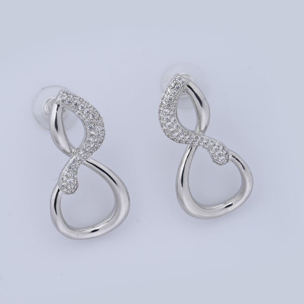 Capture timeless elegance with these breathtaking Silver-Tone Infinity Drop Earrings. Featuring a graceful figure-eight or infinity symbol design, these earrings combine sleek, polished curves with dazzling sparkle. The upper half of the loop is beautifully lined with brilliant, clear pave cubic zirconia (CZ) stones, adding a captivating flash of light that contrasts exquisitely with the smooth, high-polish finish of the lower section. This iconic shape symbolizes eternal love and connection, making them a meaningful and fashionable accessory.