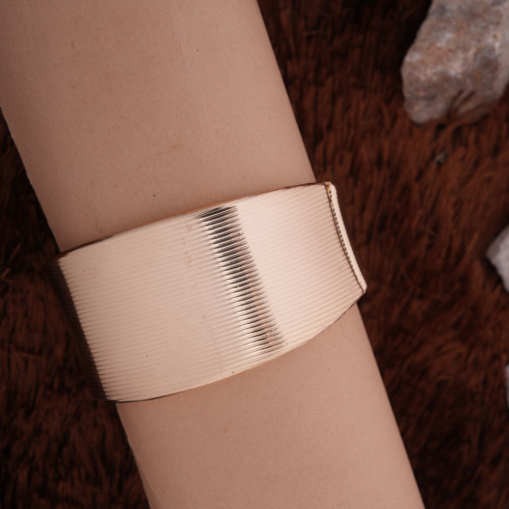Make a bold yet sophisticated statement with this Elegant Wide Ribbed Gold-Tone Cuff Bracelet. Featuring a striking, broad silhouette and a beautifully textured finish with fine horizontal ribbing, this piece catches the light and adds a touch of modern glamour to any outfit. The cuff design ensures a comfortable fit and makes it easy to slip on and off. Whether you're dressing up for a special occasion or adding a chic accent to your everyday wear, this bracelet is a versatile and essential addition to your jewelry collection.