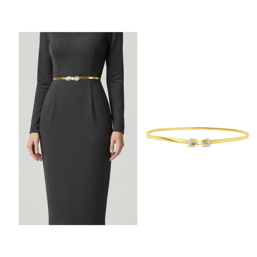 With a shimmering rhinestone and pearl bow centerpiece, this classy and dainty belt has a gold satin strap. A dash of glitz may be added to any ensemble with this stylish and adaptable belt.