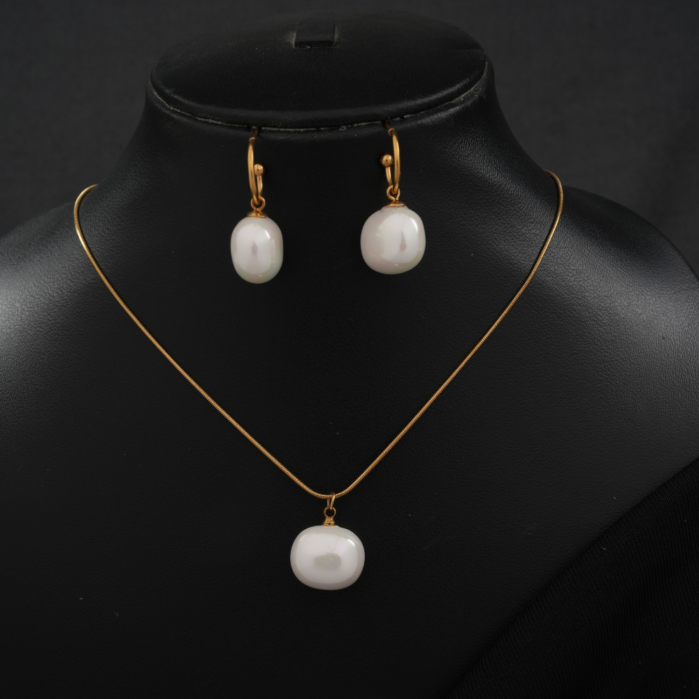 Elevate your elegance with this Gold-Tone Baroque Pearl Necklace and Earring Set, a timeless expression of sophistication and natural beauty. Designed with minimalist grace, the set celebrates the organic allure of baroque pearls paired with the warm glow of gold-tone metal.