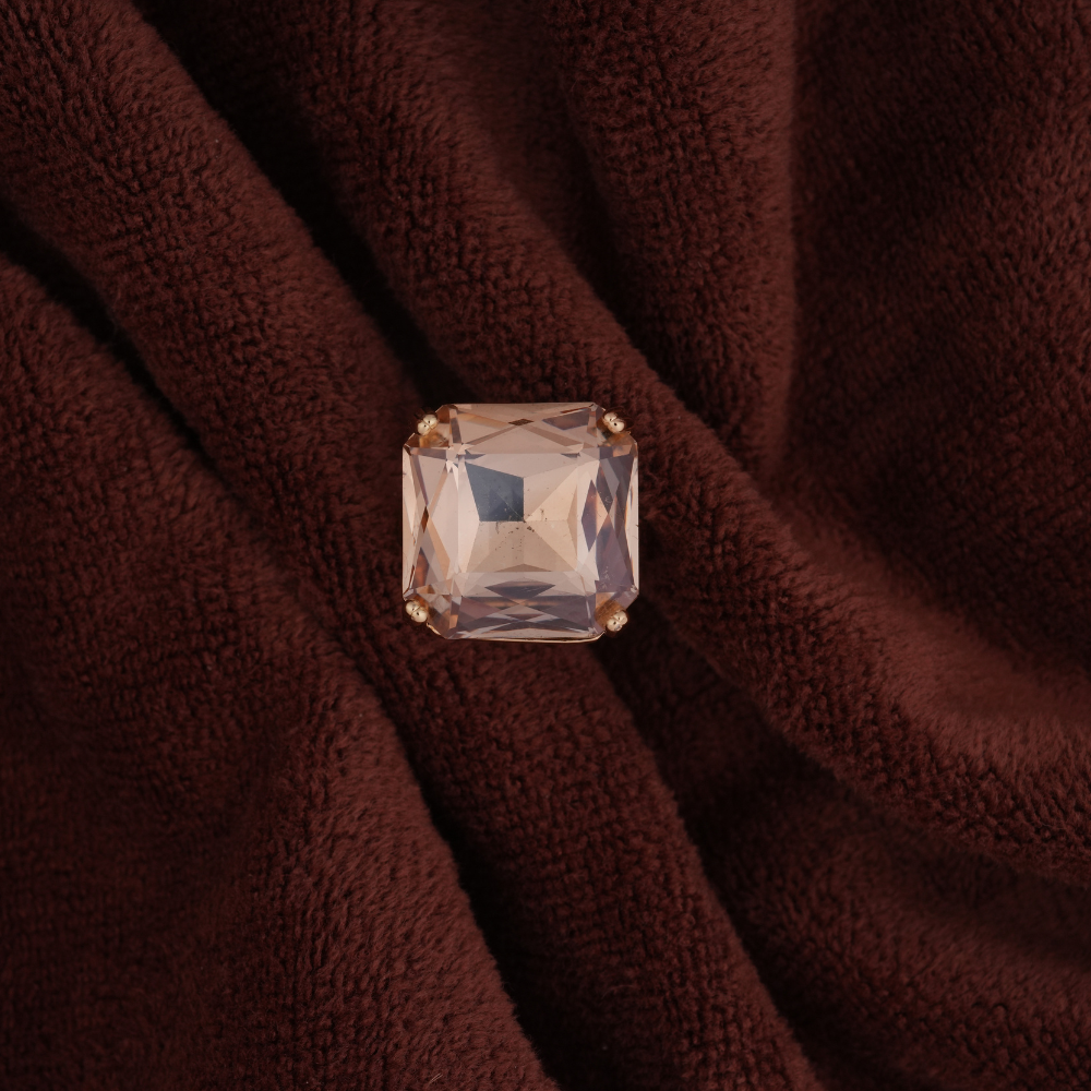 Champagne-Tone Stone: Warm, translucent hue reminiscent of morganite or light topaz.