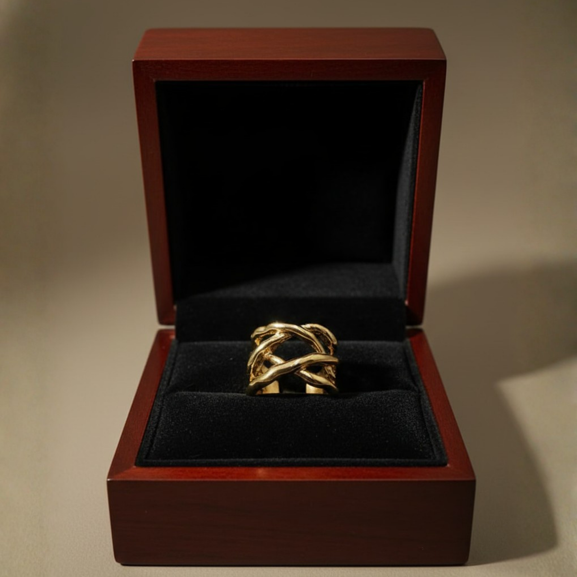 Interwoven Crisscross Design: Layered, sculptural bands for a bold modern look