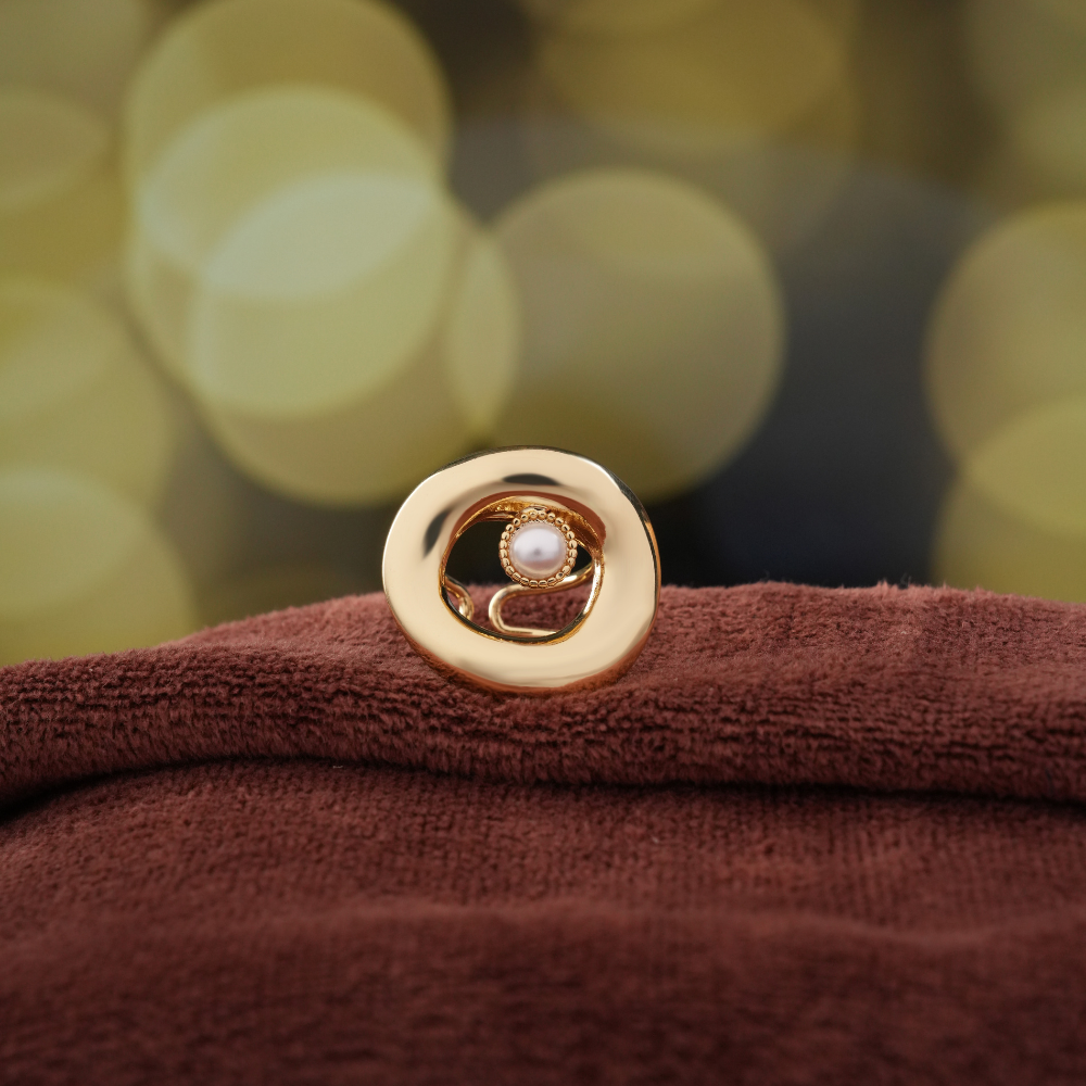 Refined and contemporary, the Gold-Tone Sculptural Pearl Accent Ring captures the perfect balance between minimalism and sophistication. Its fluid, asymmetrical silhouette evokes the essence of modern art — soft curves, graceful form, and effortless elegance.