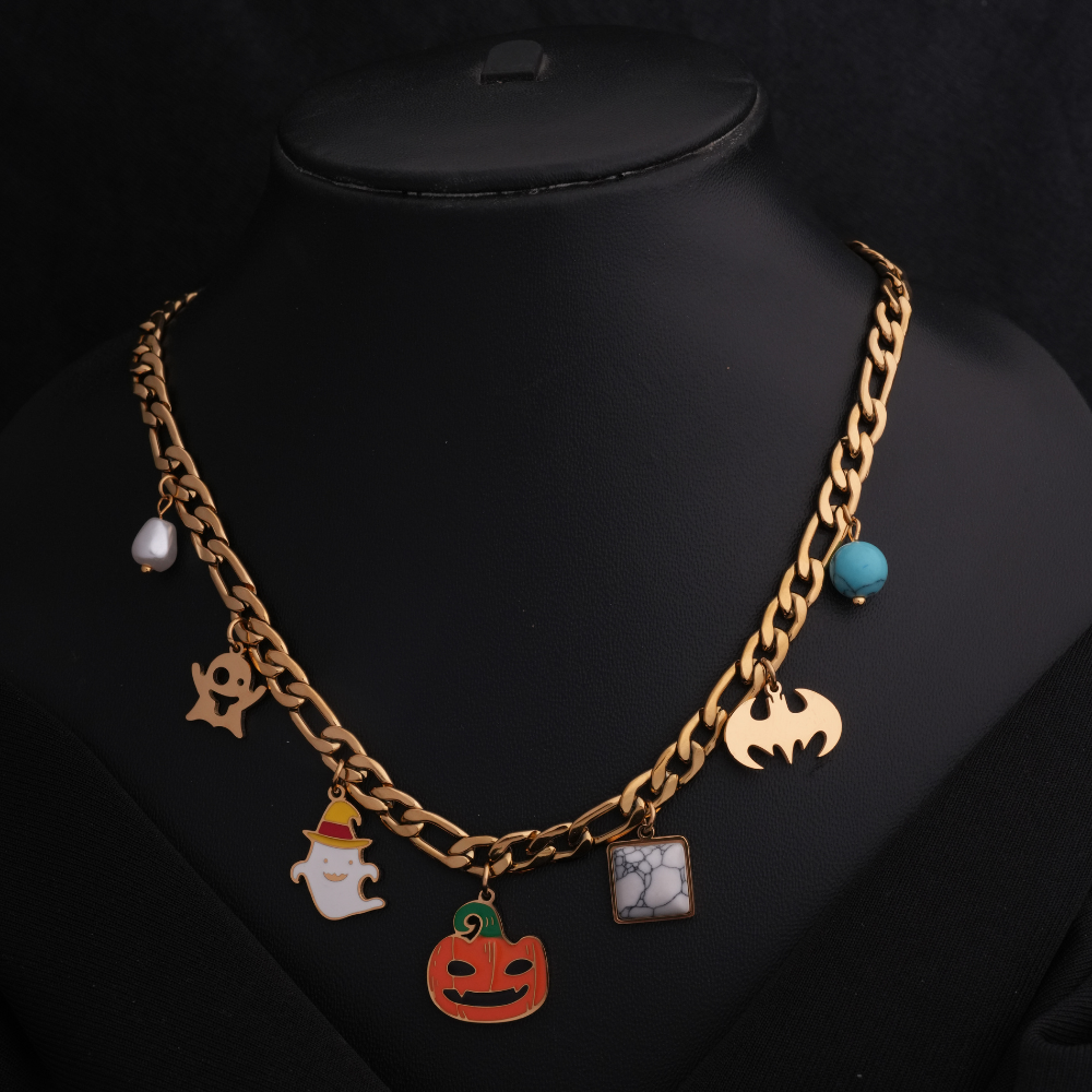 Celebrate the spirit of the spooky season in style with this Halloween-Themed Charm Necklace, a playful yet chic statement piece that perfectly balances fun, fashion, and festivity. Designed with a mix of whimsical charms and bold textures, this necklace captures the joyful energy of Halloween while remaining a standout accessory for themed events or casual looks.