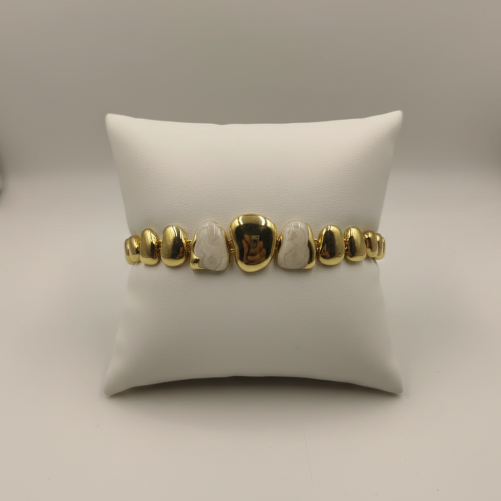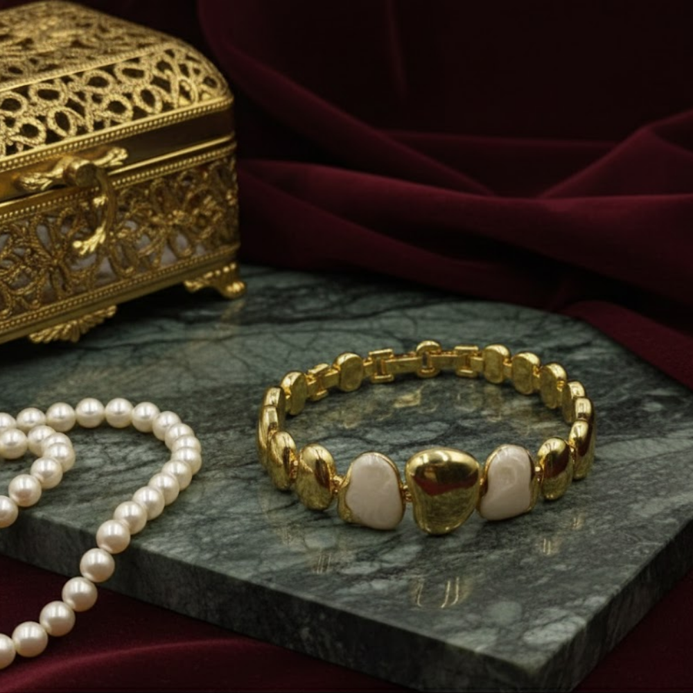 A high-gloss gold-tone finish gives the bracelet a rich, radiant look, while the pearl beads add a soft, elegant touch that makes it feel more premium.