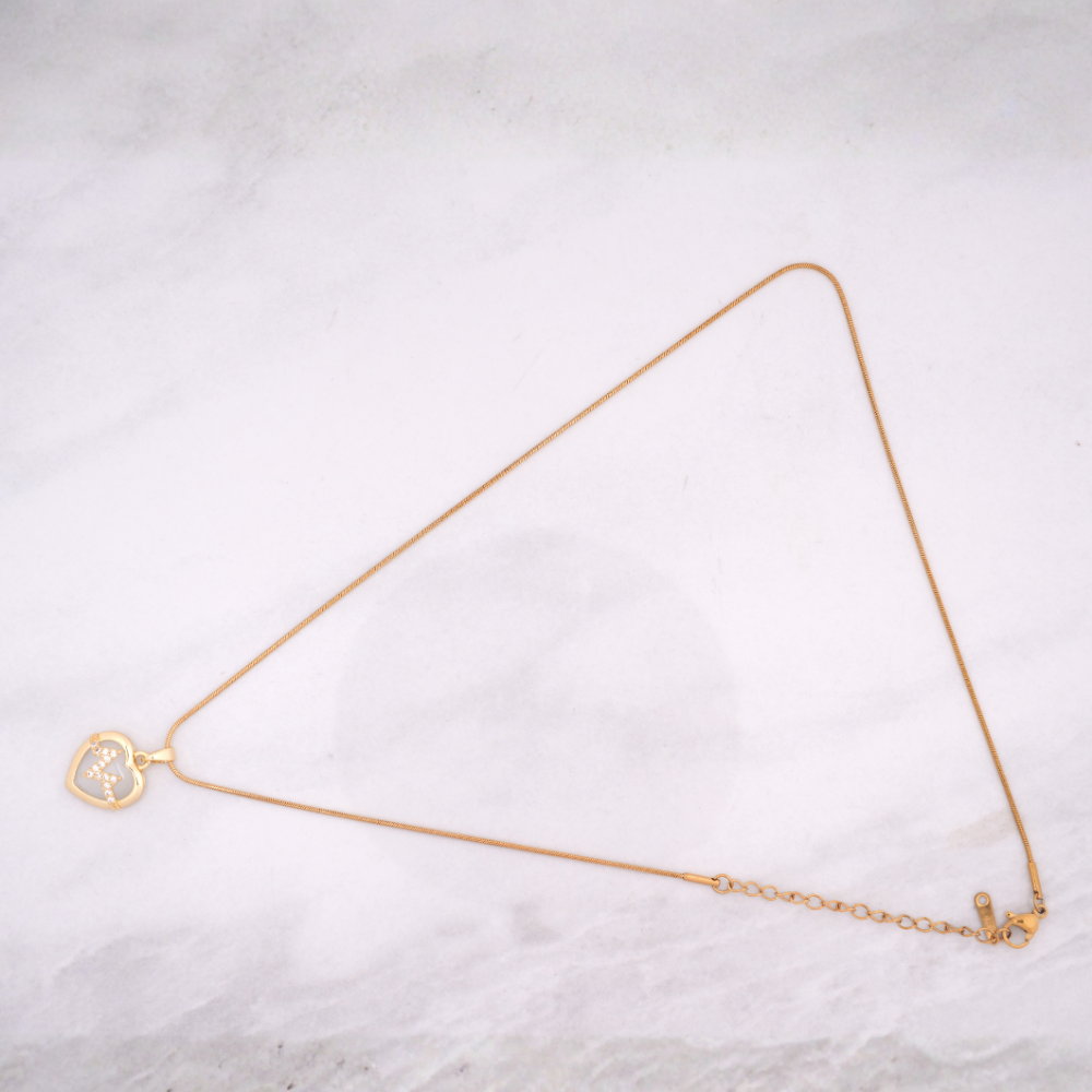 The necklace features a delicate, polished gold-tone snake or fine rolo chain, smooth and flexible, perfectly complementing the pendant. The pendant itself is a beautifully crafted heart with a polished gold-tone frame and a soft, light-colored inlay—reminiscent of mother-of-pearl or opalite. Across the inlay runs a stylized ECG/EKG heartbeat line in gold-tone metal, accented with tiny sparkling stones (likely cubic zirconia) that catch the light with every movement. The combination of romantic heart shape and symbolic heartbeat creates a piece that is both sentimental and stylish.