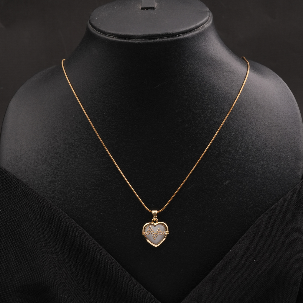 Meaningful Motif: Heart-shaped pendant with heartbeat (ECG/EKG) design symbolizing life and love.