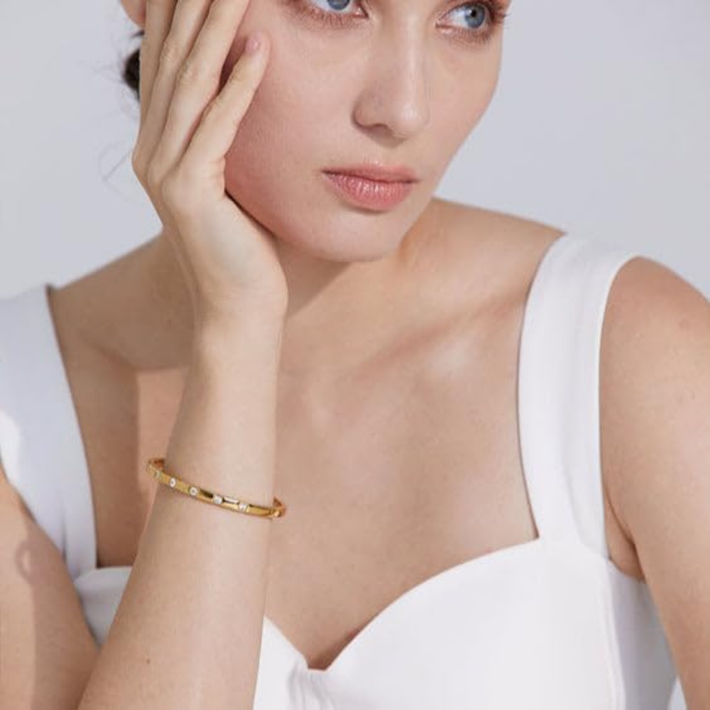 Refined, timeless, and effortlessly elegant — the Minimal Crystal Slim Bangle Bracelet in Gold Tone is crafted for those who appreciate subtle luxury. With its clean silhouette and delicate sparkle, this bracelet adds a graceful touch to both everyday and special-occasion styling.