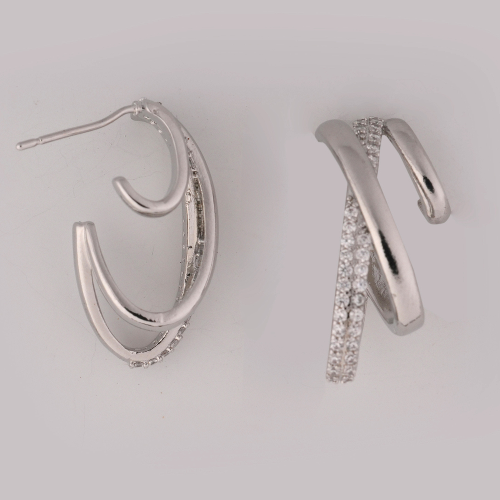 Make a chic, contemporary statement with these stunning Crossover Triple-Band Hoop Earrings. They feature a unique, intertwined design where three separate silver-tone bands gracefully wrap around each other. One of the bands is intricately set with brilliant pave cubic zirconia (CZ) stones, adding a dazzling splash of sparkle that beautifully contrasts with the high-polish finish of the other two bands. This modern sculpture for your ears perfectly balances bold structure with elegant shine.