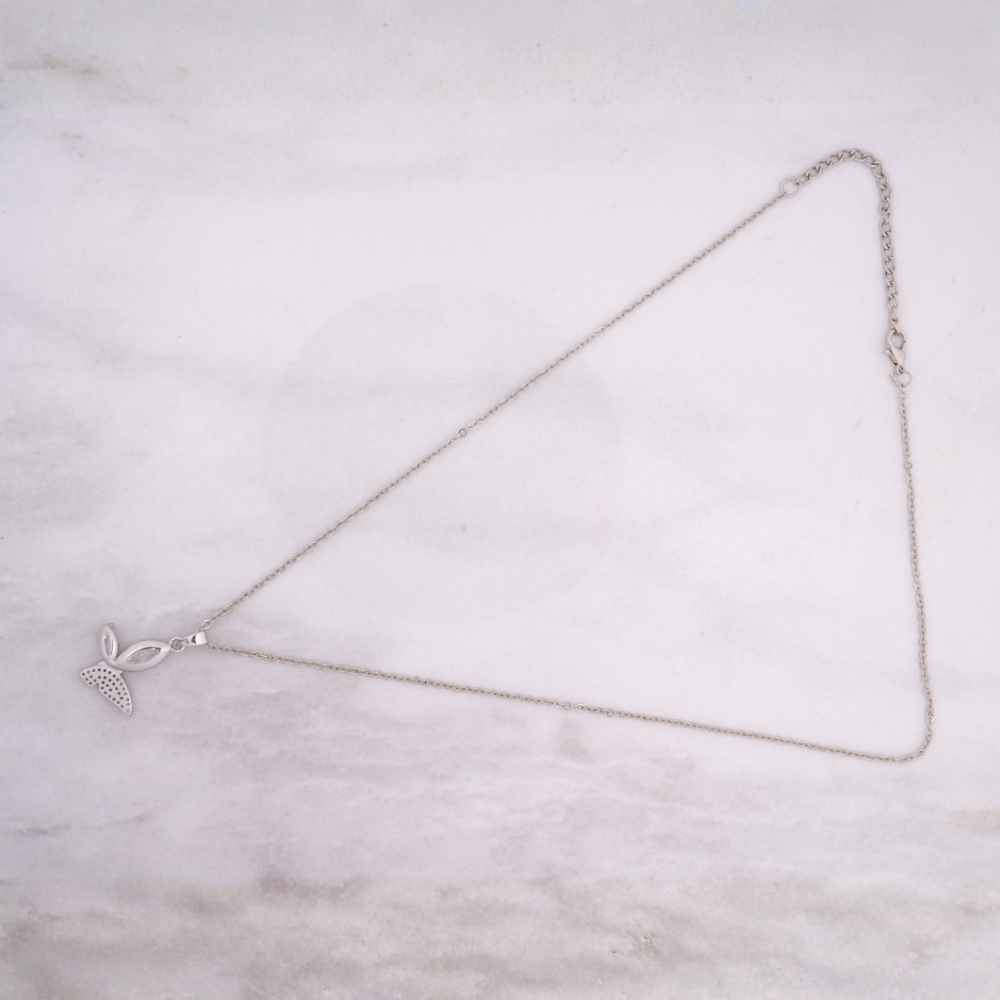 Suspended from a slender silver-tone chain, the pendant strikes the perfect balance between subtle sparkle and refined elegance.