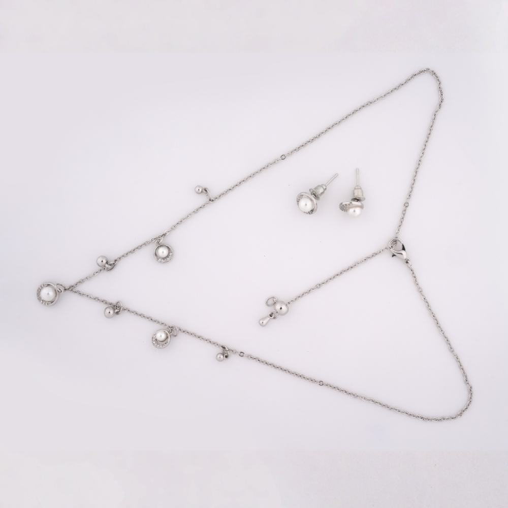 Add a touch of timeless grace to your look with the Silver-Tone Pearl Dangle Necklace & Earring Set — a refined ensemble that perfectly balances classic beauty with modern sophistication. Its luminous pearls and subtle sparkle make it a versatile choice for both everyday elegance and special occasions.