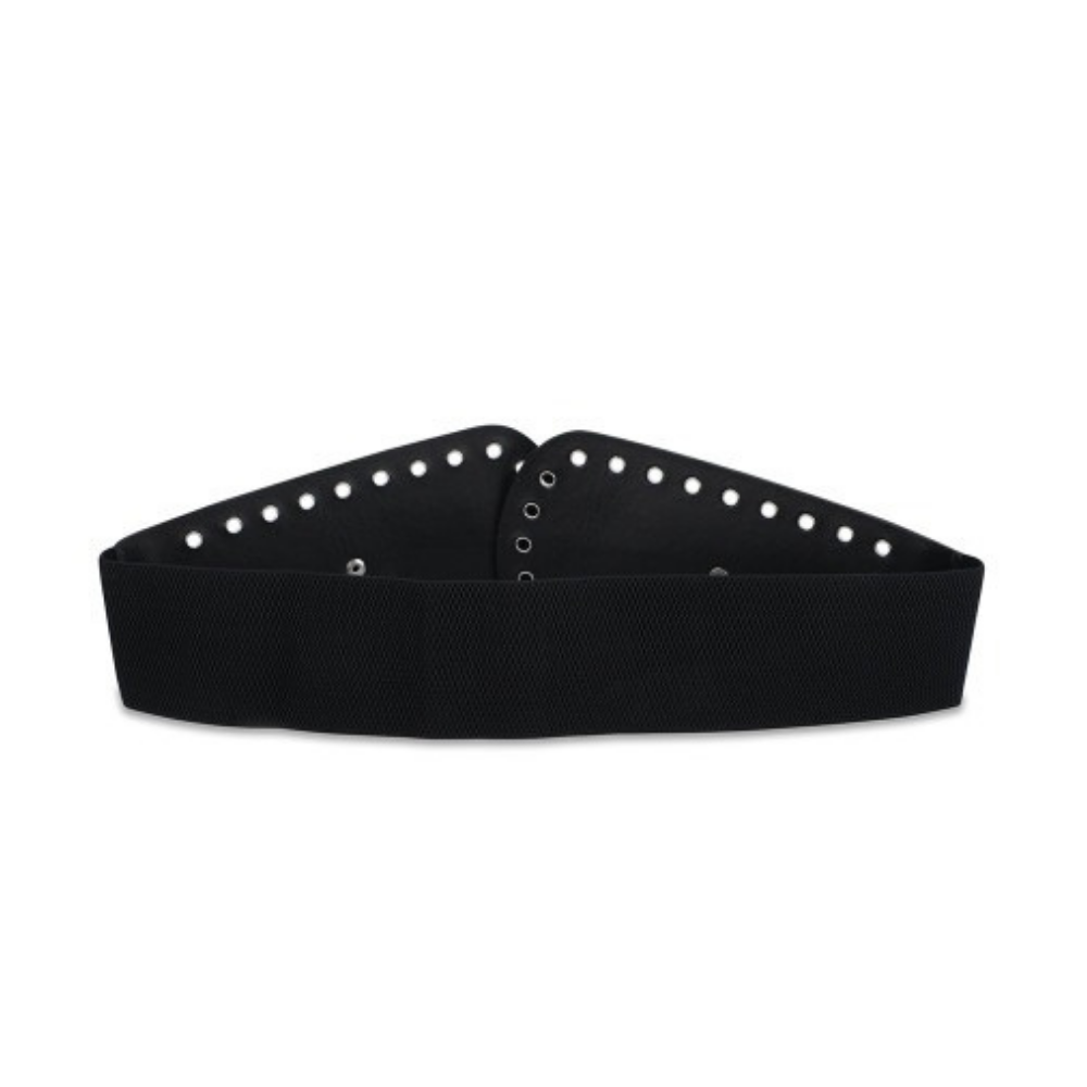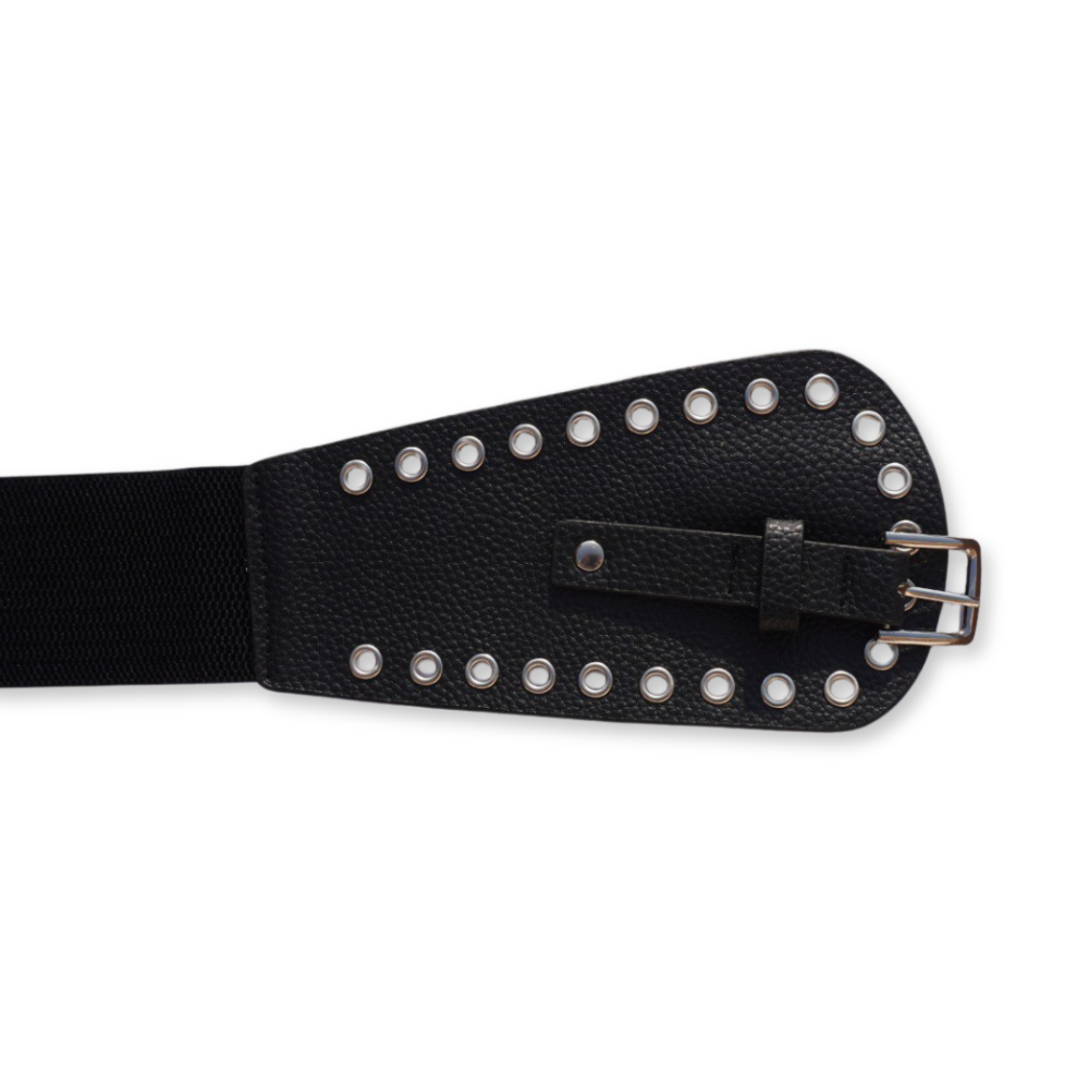 Define your waistline beautifully with this Wide Black Elastic Cinch Belt, designed to enhance your silhouette and add a bold, fashionable touch to any outfit. With its silver eyelet detailing and sturdy buckle closure, this belt delivers both style and function—perfect for dresses, long tops, jumpsuits, cardigans, and party wear.