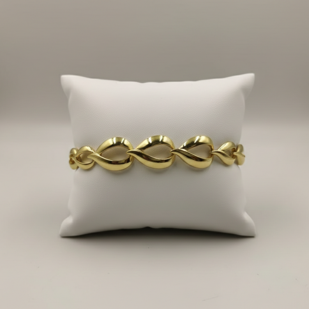 A series of twisted infinity-style links create a fluid, wave-like pattern that looks graceful and powerful at the same time. Each link is softly curved, giving the bracelet a premium sculptural look.