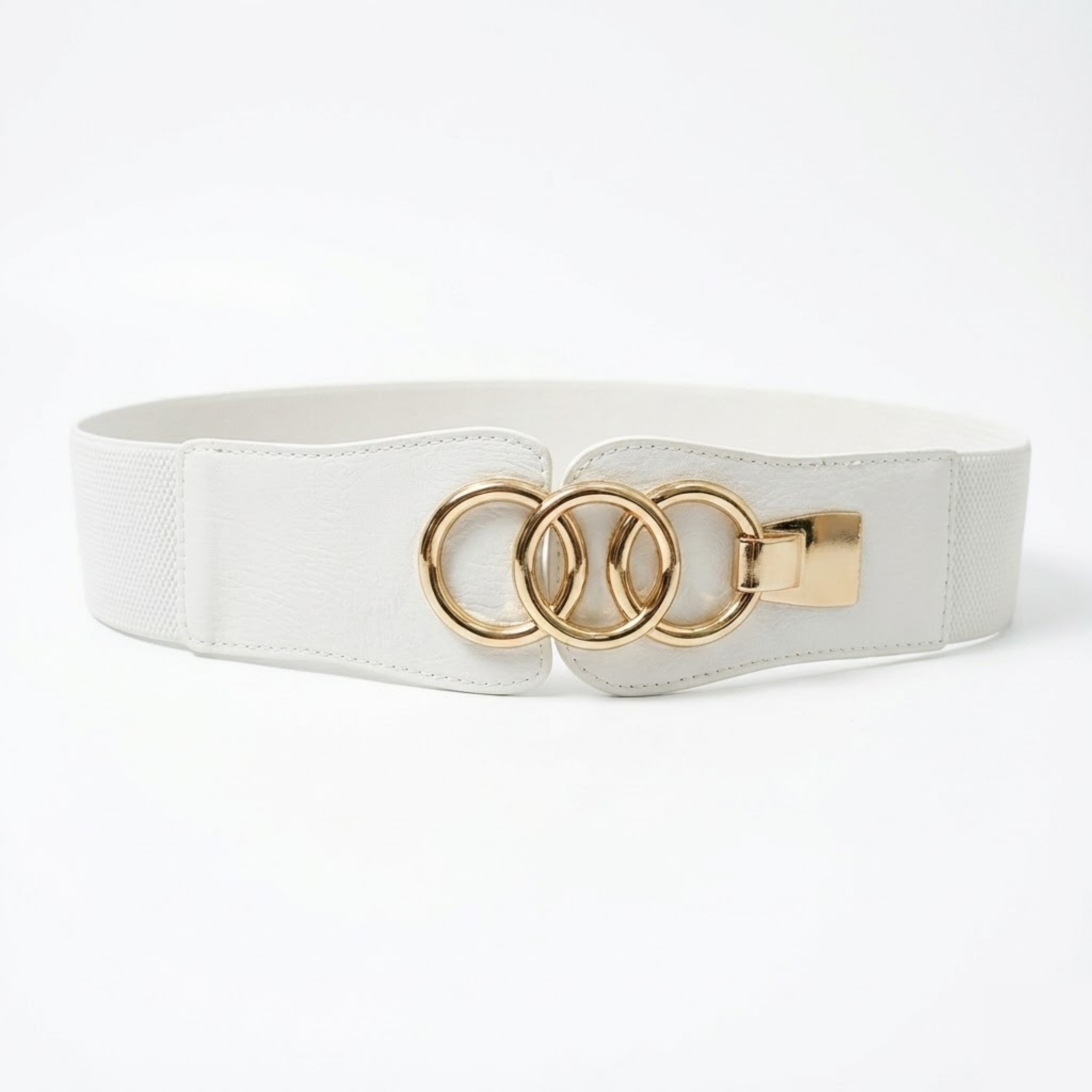 Add a touch of modern sophistication to your wardrobe with this elegant Wide White Elastic Waist Belt. Designed to define your waistline and create a flattering silhouette, this belt is the perfect accessory for any season.