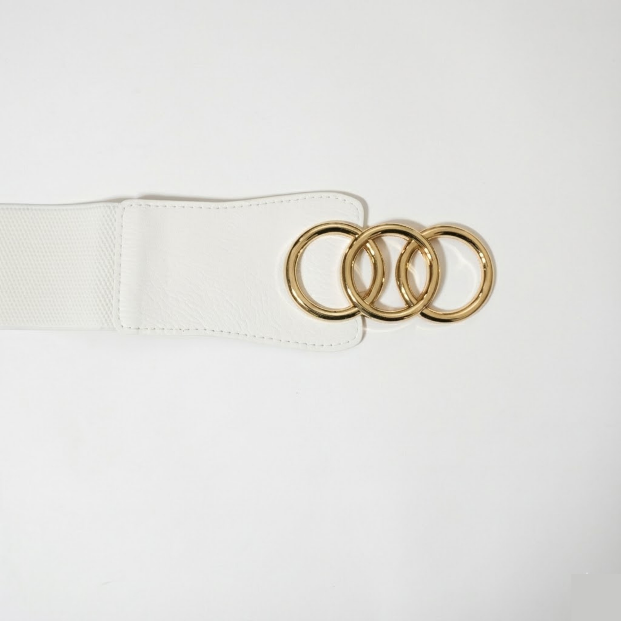 Chic Triple-Ring Buckle: The eye-catching interlocking three-ring design in polished gold-tone metal adds a luxurious and modern finish.